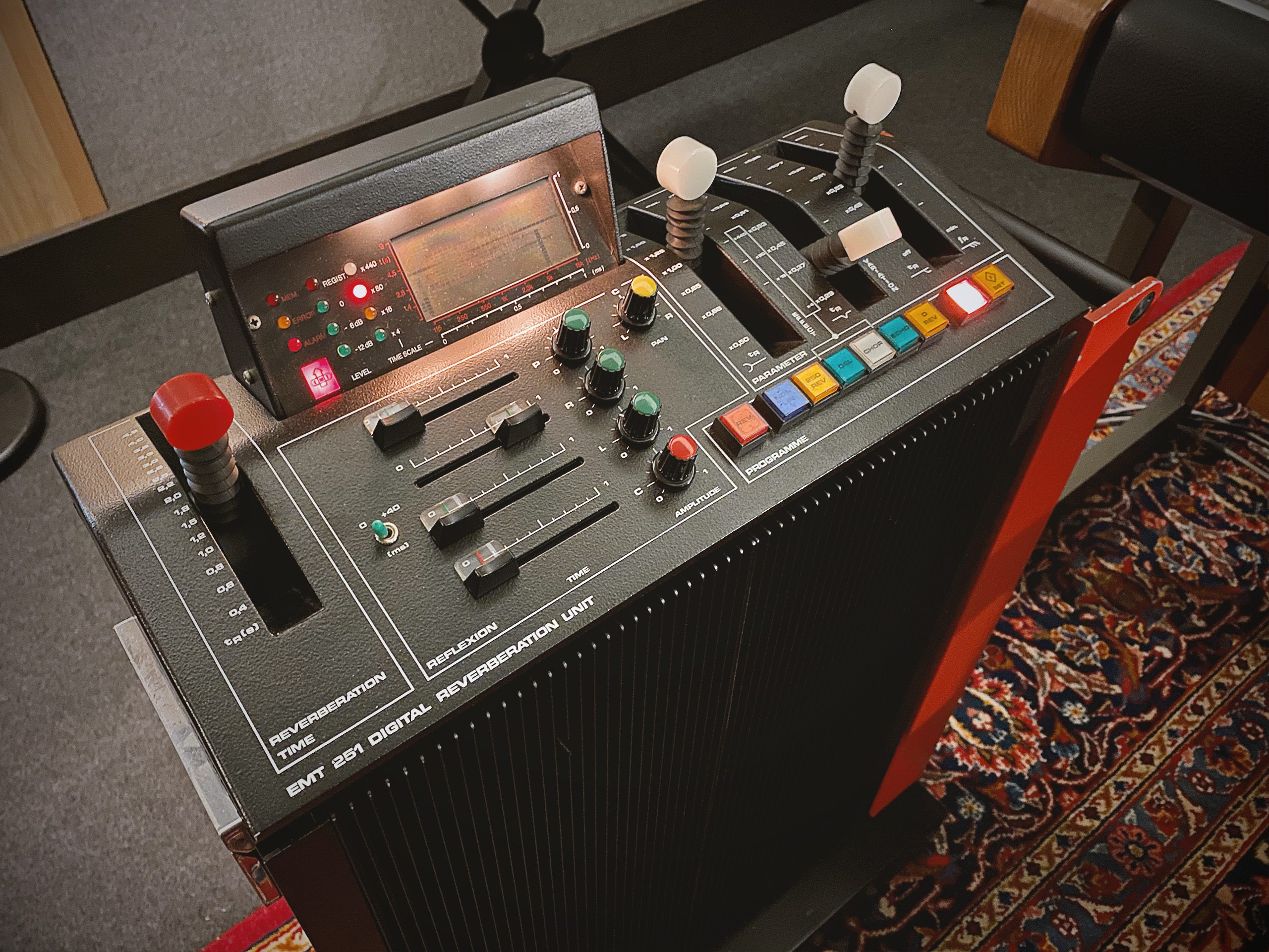 Über 30 EMT-Geräte aus den Ären FRANZ, EMT-FRANZ und Barco-EMT kommen bei uns zum Einsatz. Darunter Highlights wie der EMT 251 Reverb mit dem legendären EMT 250-Hallprogramm, aber auch Raritäten wie der analoge EMT 240 mit seinem einzigartigen Goldfolienhall. Ergänzt wird das Setup durch hochwertige EMT-Limiter/Kompressoren und tiefgreifenden EQs – eine wahre Fundgrube für Klangliebhaber.