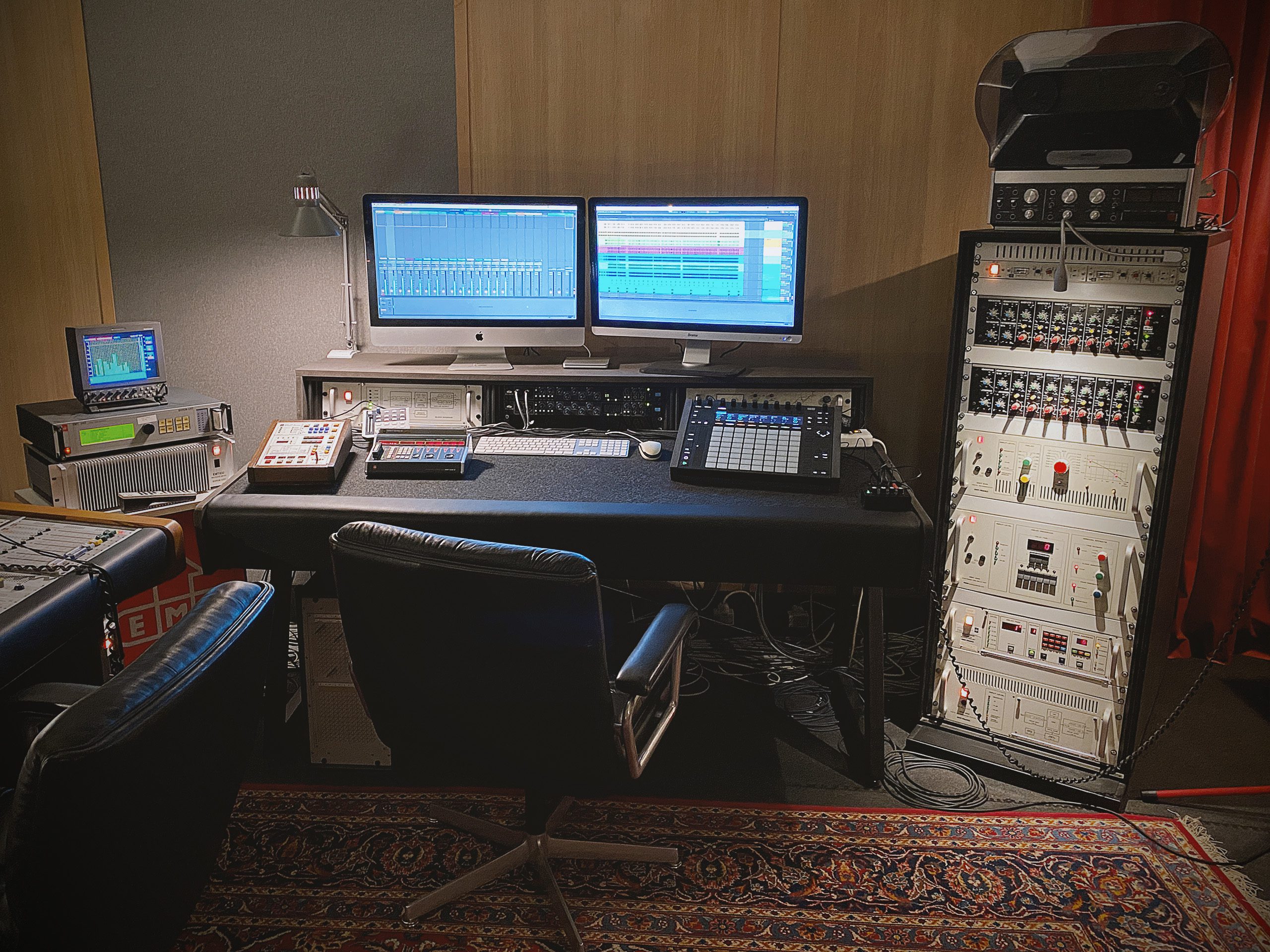 Im Zentrum steht ein vollständig überarbeitetes 30-Kanal-EMT-Multioutput-Mixsystem – das Herzstück unseres Studios. Umgeben ist es von einer umfangreichen Auswahl an originalen EMT-Geräten, die zur externen analogen Soundbearbeitung bereitstehen – in harmonischem Zusammenspiel mit den Vorteilen moderner Digitaltechnik.